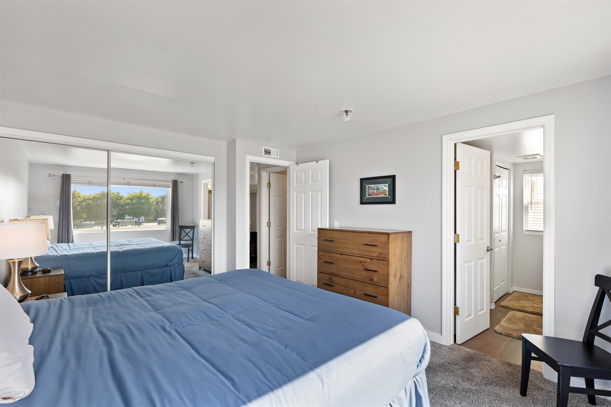 • Primary Bedroom: King bed, en-suite bathroom, and a tub/shower combo