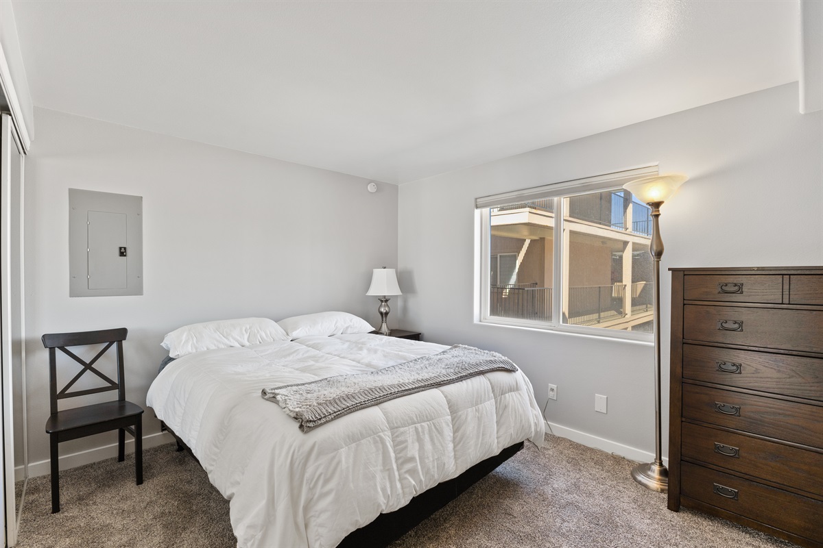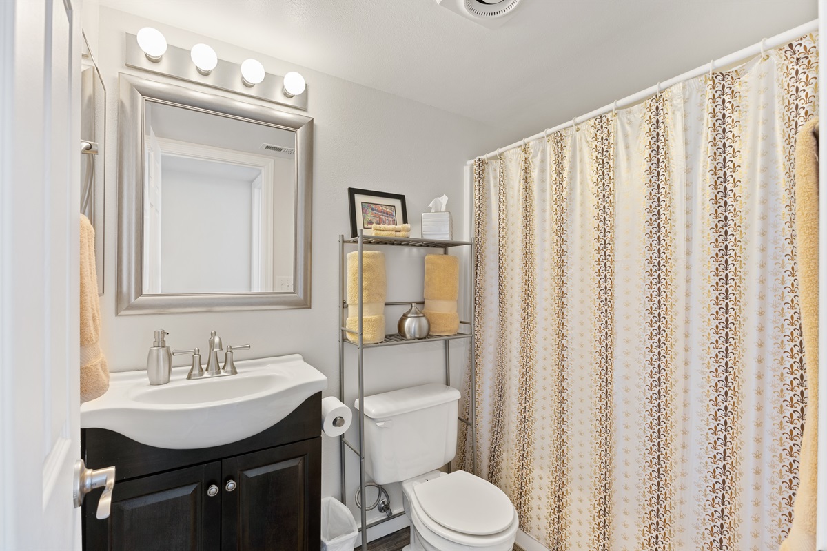 • Second Bedroom: Queen bed with nearby full bath featuring a tub/shower combo