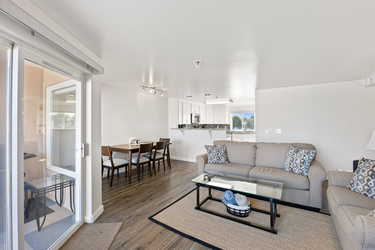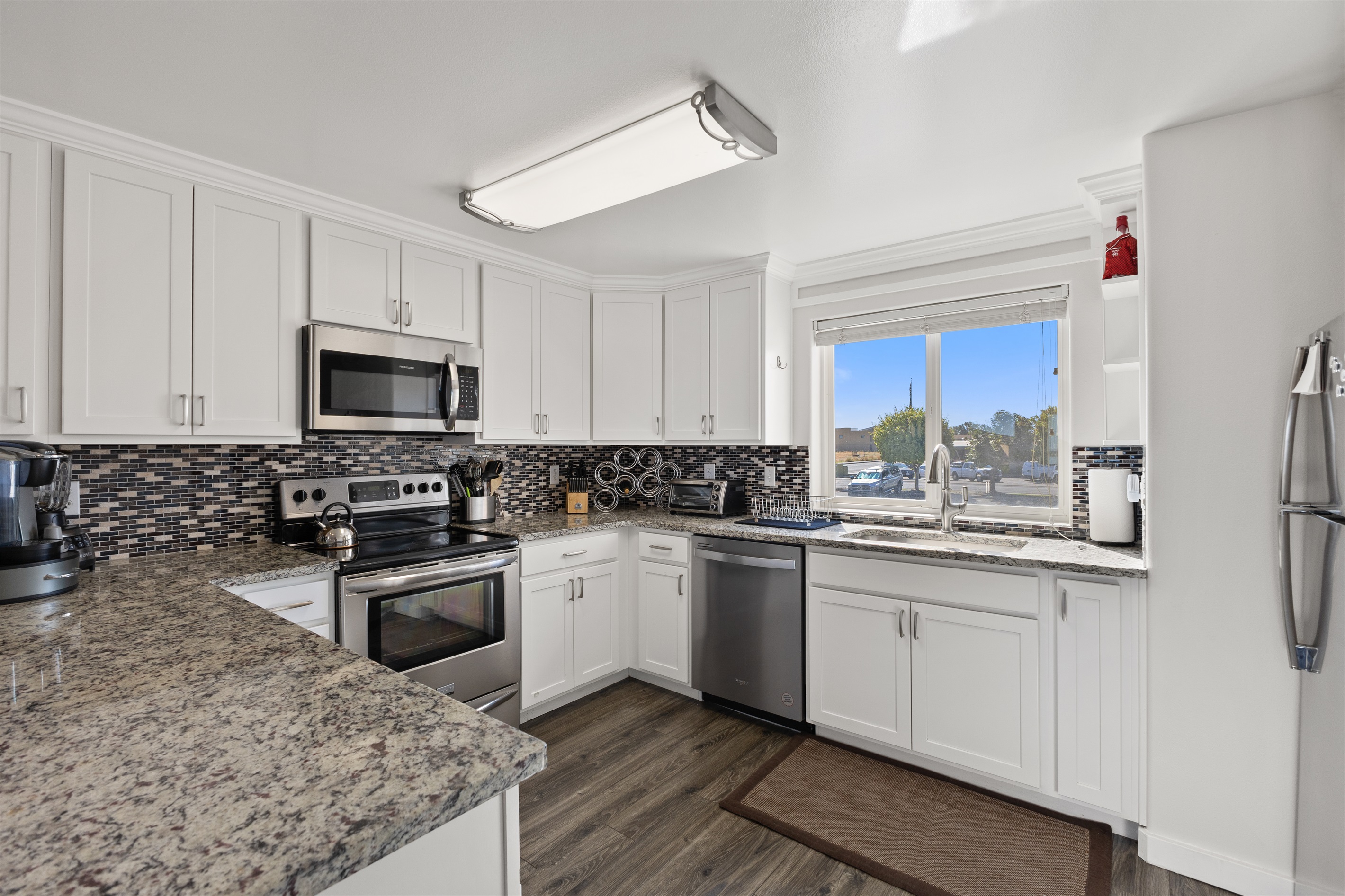 • Modern appliances including fridge, oven, dishwasher, and microwave